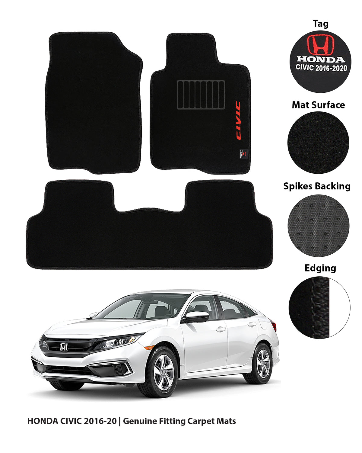 HONDA CIVIC X 2016-2021 EXECUTIVE SIDE LOGO CARPET CAR FLOOR MAT