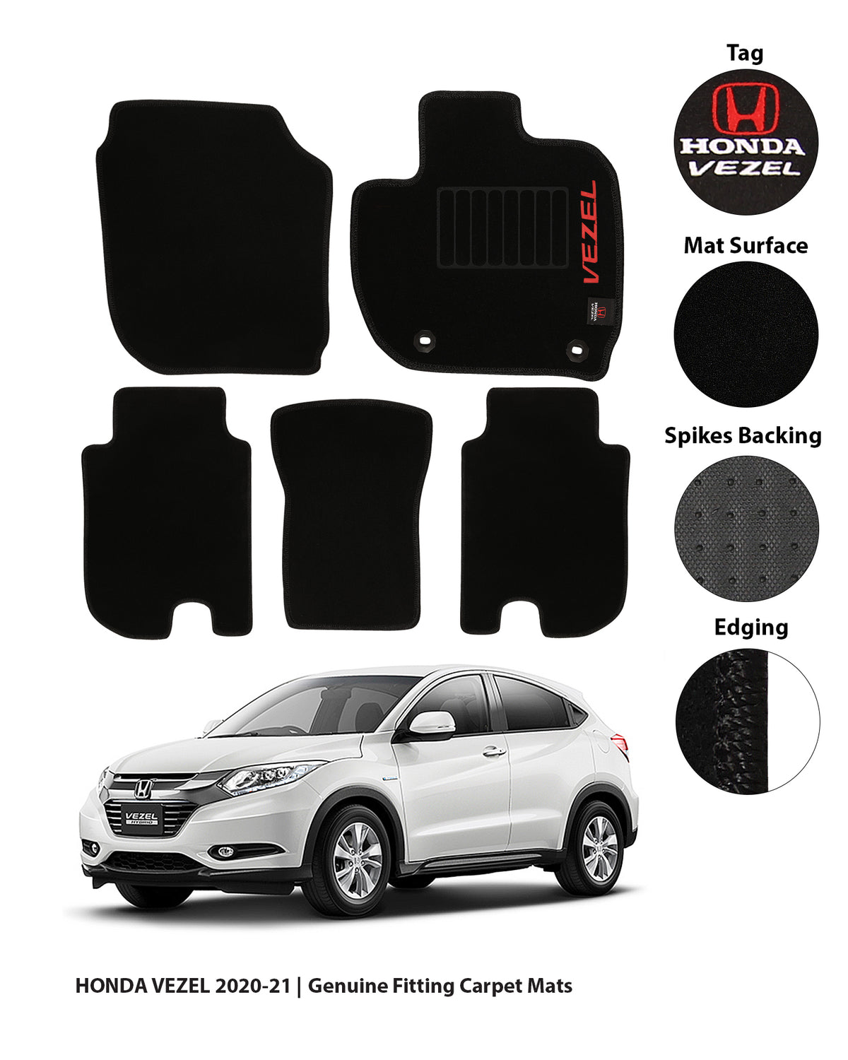HONDA VEZEL 2013-2021 EXECUTIVE SIDE LOGO CARPET CAR FLOOR MAT