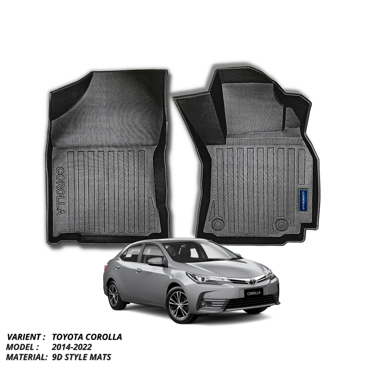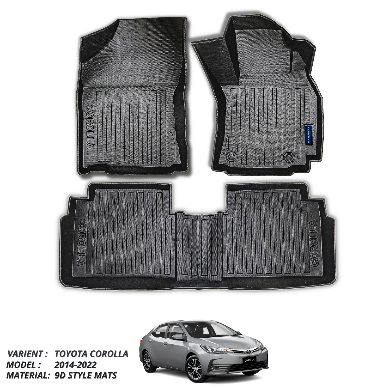 Discover TOYOTA COROLLA 2014-PRESENT PLASTIC HEAVY DUTY 9D FLOOR MAT: high-quality 9d mats refined for modern vehicles. Made from durable 9D. Available in Black. Durable, dependable, and hassle-free.