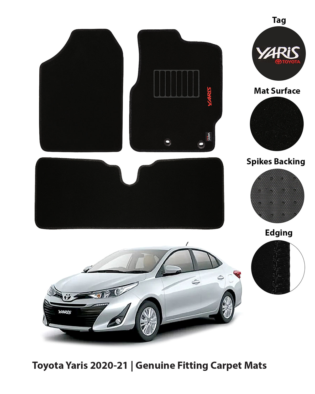 TOYOTA YARIS 2020-PRESENT EXECUTIVE SIDE LOGO CARPET CAR FLOOR MAT brings a tailored fit to your executive mats. Made from durable Executive. Available in Black. Resistant to wear, easy to clean, and made for everyday use.